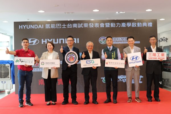 氫被視為終極綠能,HYUNDAI現代汽車總代理南陽實業6日在台南舉辦「HYUNDAI 氫能巴士台南試乘發表會暨動力產學啟動典禮」,正式導入 HYUNDAI ELEC CITY 氫燃料電池巴士,並結合亞太 ESG 行動聯盟、崑山科技大學、台南市政府交通局與南科管理局,啟動示範運行與產學研平台,加速建構台灣零碳公共運輸生態系。