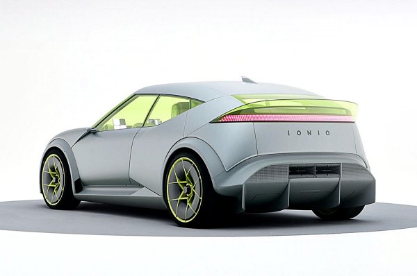 這台概念車的車身長度4288mm,和福斯汽車的Golf是很相似的,然而,它遠非傳統的掀背車,而是現代汽車所說的一台「空氣動力學掀背車」(aero hatch),具有更活潑的車身和如雕塑般立體的尾門和擾流翼,可優化氣流以實現低阻力和更高的能源效率。這與現代 Ioniq 電動車系列的其他車款一致,這些車子都避開傳統的汽車造型和尺寸。